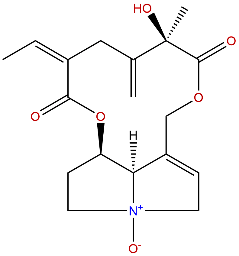 Synonyms: Seneciphylline N-oxide; 38710-26-8; (1R,4E,7R,17R)-4-ethylidene-7-hydroxy-7-methyl-6-methylidene-14-oxido-2,9-dioxa-14-azoniatricyclo[9.5.1.014,17]heptadec-11-ene-3,8-dione; Seneciophylline N-Oxide; CHEBI:136427; MFCD20260632; Seneciphylline N-oxide , HPLC Grade; AKOS032948620; …