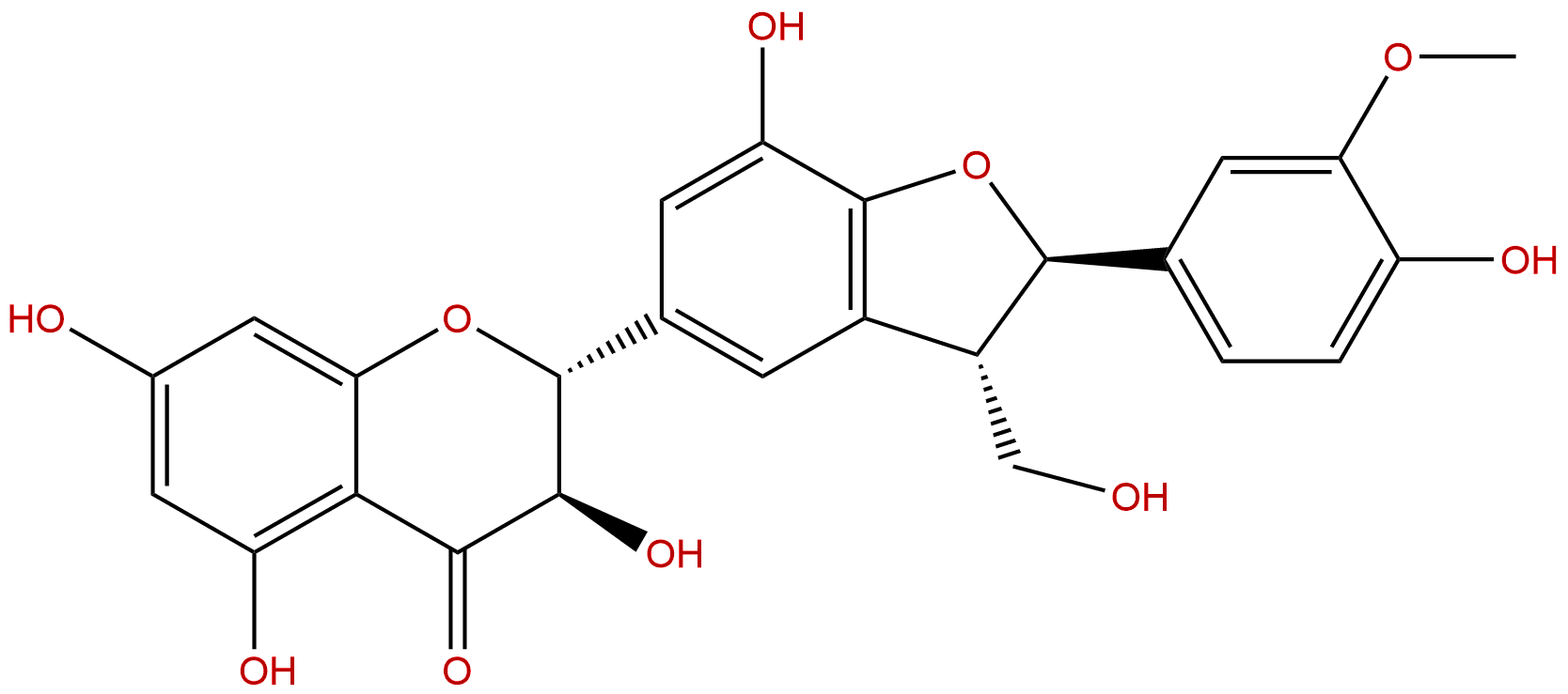 IUPAC Name: (2R,3R)-3,5,7-trihydroxy-2-[(2R,3S)-7-hydroxy-2-(4-hydroxy-3-methoxyphenyl)-3-(hydroxymethyl)-2,3-dihydro-1-benzofuran-5-yl]-2,3-dihydrochromen-4-one