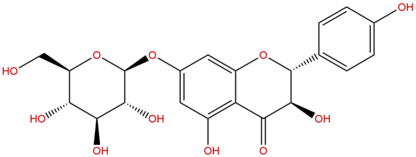 IUPAC Name: (2R,3R)-3,5-dihydroxy-2-(4-hydroxyphenyl)-7-[(2S,3R,4S,5S,6R)-3,4,5-trihydroxy-6-(hydroxymethyl)oxan-2-yl]oxy-2,3-dihydrochromen-4-one