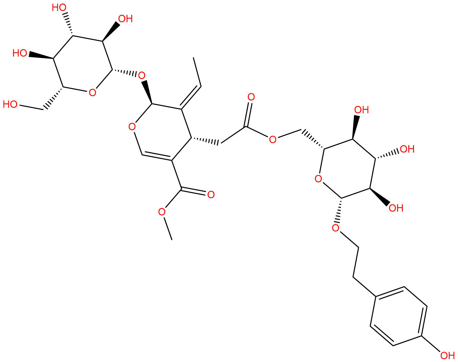 IUPAC Name: methyl (4S,5Z,6S)-5-ethylidene-4-[2-oxo-2-[[(2R,3S,4S,5R,6R)-3,4,5-trihydroxy-6-[2-(4-hydroxyphenyl)ethoxy]oxan-2-yl]methoxy]ethyl]-6-[(2S,3R,4S,5S,6R)-3,4,5-trihydroxy-6-(hydroxymethyl)oxan-2-yl]oxy-4H-pyran-3-carboxylate