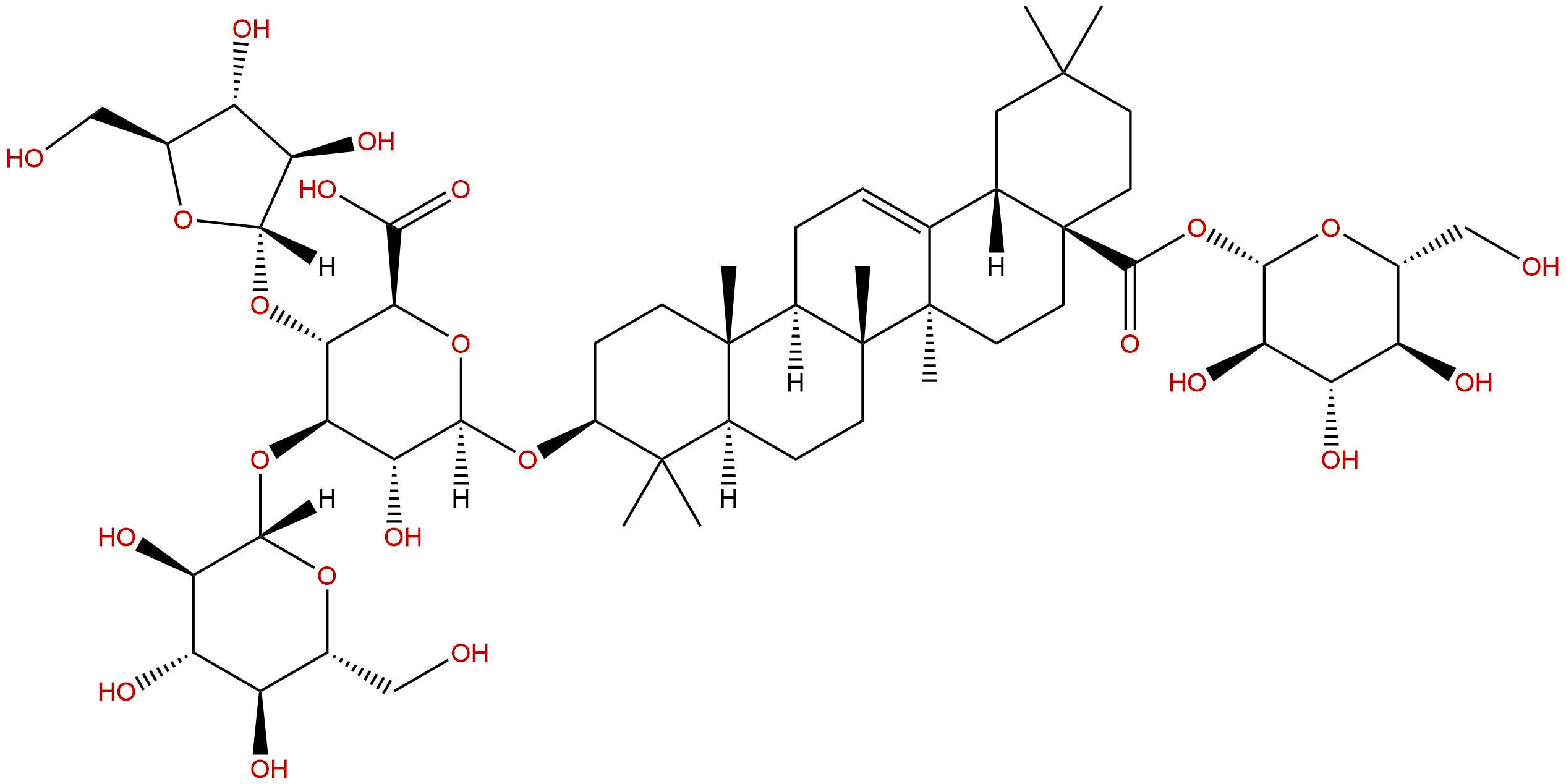 InChI: InChI=1S/C53H84O23/c1-48(2)14-16-53(47(68)76-45-37(64)34(61)31(58)25(20-55)71-45)17-15-51(6)22(23(53)18-48)8-9-28-50(5)12-11-29(49(3,4)27(50)10-13-52(28,51)7)72-46-38(65)39(73-44-36(63)33(60)30(57)24(19-54)69-44)40(41(75-46)42(66)67)74-43-35(62)32(59)26(21-56)70-43/h8,23-41,43-46,54-65H,9-21H2,1-7H3,(H,66,67)/t23-,24+,25+,26-,27-,28+,29-,30+,31+,32-,33-,34-,35+,36+,37+,38+,39+,40-,41-,43-,44-,45-,46+,50-,51+,52+,53-/m0/s1