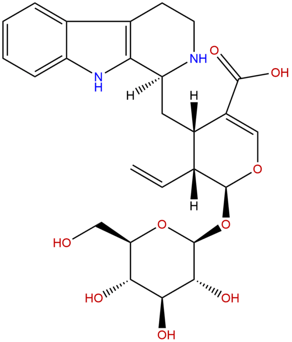 IUPAC Name: (2S,3R,4S)-3-ethenyl-4-[[(1S)-2,3,4,9-tetrahydro-1H-pyrido[3,4-b]indol-1-yl]methyl]-2-[(2S,3R,4S,5S,6R)-3,4,5-trihydroxy-6-(hydroxymethyl)oxan-2-yl]oxy-3,4-dihydro-2H-pyran-5-carboxylic acid