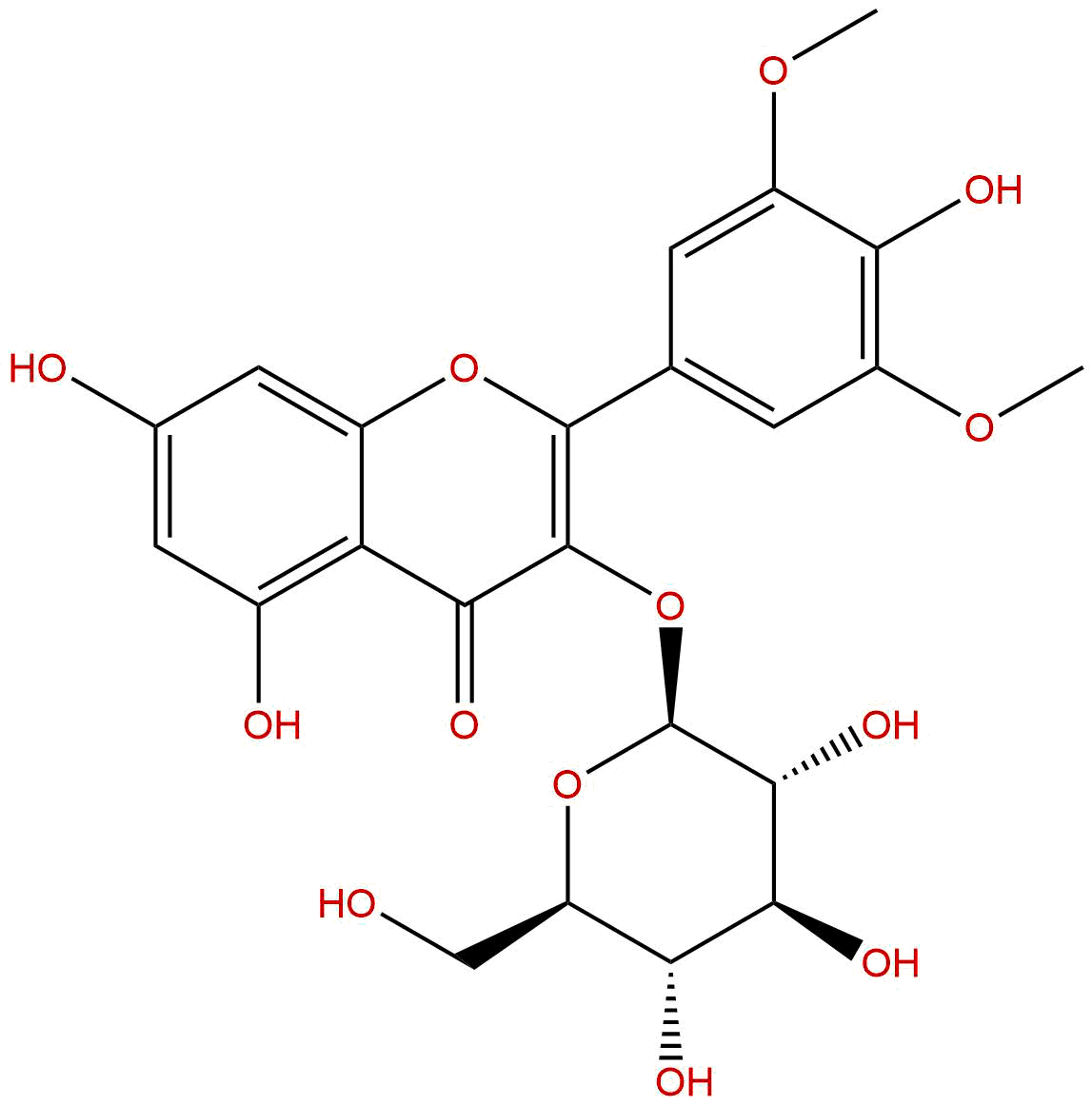 IUPAC Name: 5,7-dihydroxy-2-(4-hydroxy-3,5-dimethoxyphenyl)-3-[(2S,3R,4S,5S,6R)-3,4,5-trihydroxy-6-(hydroxymethyl)oxan-2-yl]oxychromen-4-one