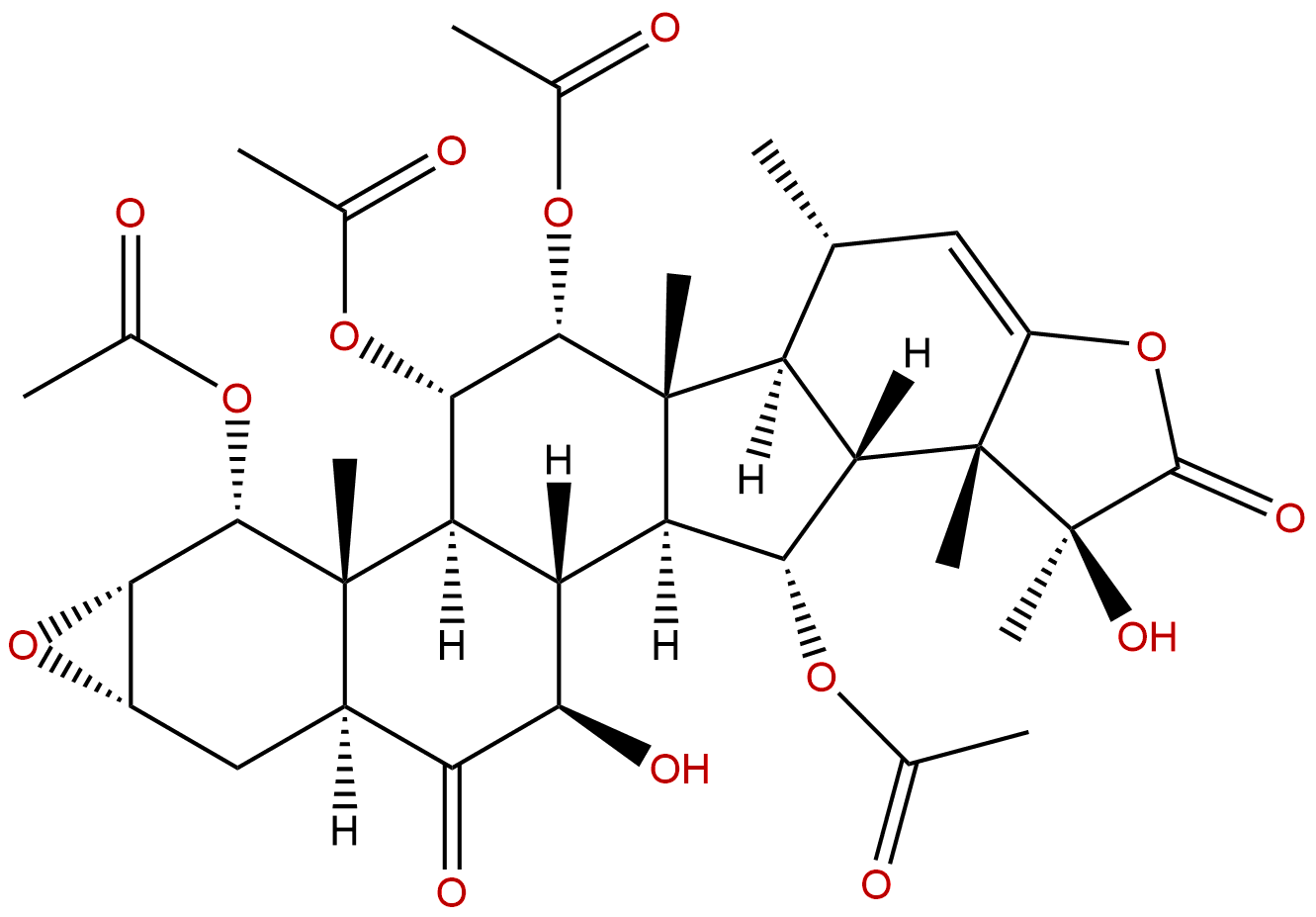 InChI: InChI=1S/C36H46O14/c1-12-10-19-35(8,36(9,44)32(43)50-19)24-21(12)34(7)22(28(24)45-13(2)37)20-23(29(46-14(3)38)31(34)48-16(5)40)33(6)17(25(41)26(20)42)11-18-27(49-18)30(33)47-15(4)39/h10,12,17-18,20-24,26-31,42,44H,11H2,1-9H3/t12-,17-,18+,20+,21+,22-,23-,24+,26-,27+,28-,29+,30+,31+,33+,34-,35+,36-/m1/s1