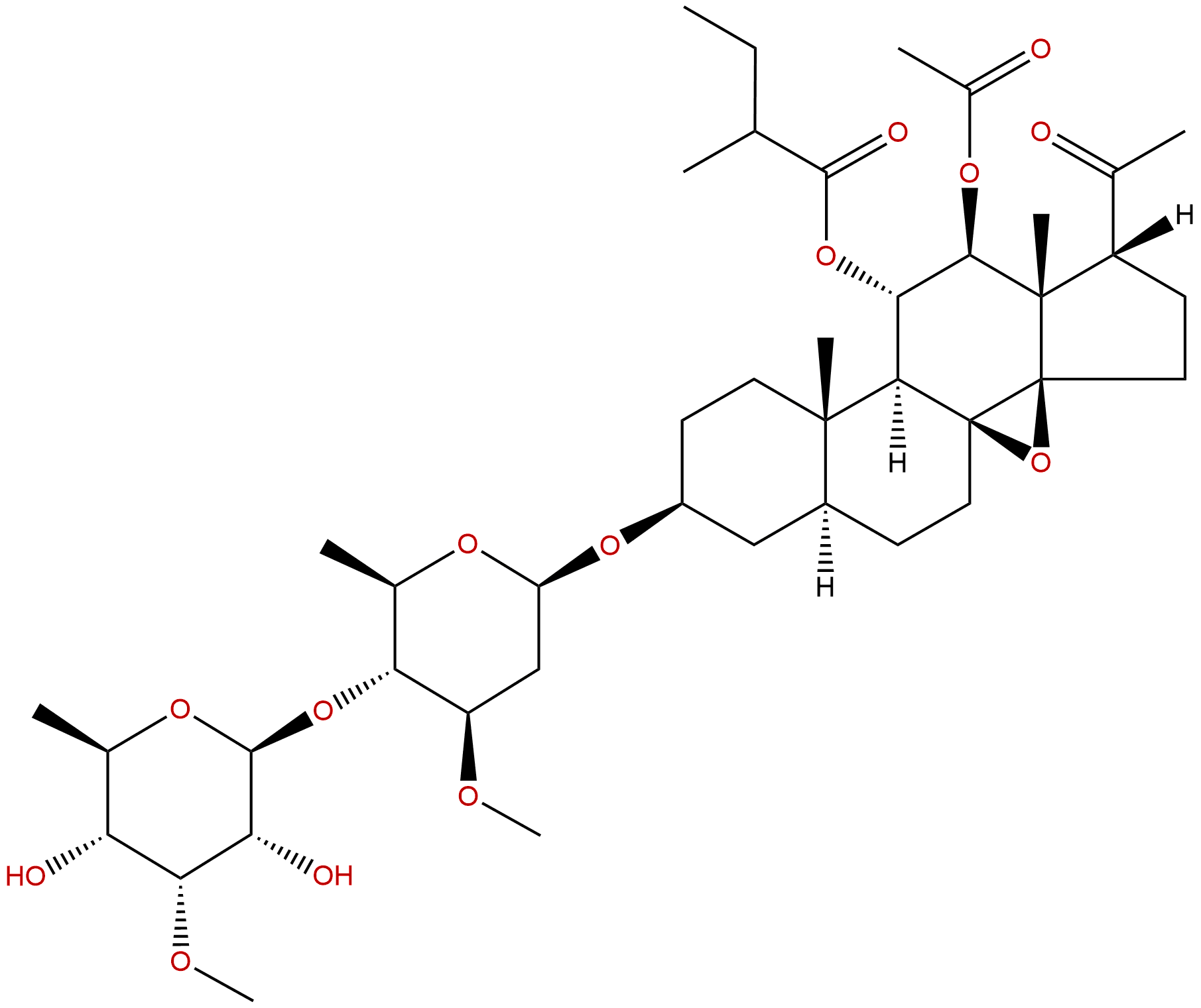 InChI: InChI=1S/C42H66O14/c1-11-20(2)37(47)54-34-35-39(7)15-13-26(53-29-19-28(48-9)32(23(5)50-29)55-38-31(46)33(49-10)30(45)22(4)51-38)18-25(39)12-16-41(35)42(56-41)17-14-27(21(3)43)40(42,8)36(34)52-24(6)44/h20,22-23,25-36,38,45-46H,11-19H2,1-10H3/t20?,22-,23-,25+,26+,27+,28-,29+,30-,31-,32-,33-,34+,35-,36-,38+,39+,40+,41+,42-/m1/s1