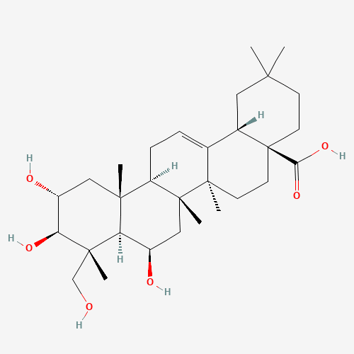 Synonyms: Terminolic acid; 564-13-6; UNII-9Z1542R0IT; 9Z1542R0IT; 2,3,6,23-Tetrahydroxyolean-12-en-28-oic acid (2alpha,3beta,4alpha,6beta)-; Olean-12-en-28-oic acid, 2,3,6,23-tetrahydroxy-, (2alpha,3beta,4alpha,6beta)-; (4aS,6aR,6aS,6bR,8R,8aR,9R,10R,11R,12aR,14bS)-8,10,11-trihydroxy-9-(hydroxymethyl)-2,2,6a,6b,9,12a-hexamethyl-1,3,4,5,6,6a,7,8,8a,10,11,12,13,14b-tetradecahydropicene-4a-carboxylic acid; CHEMBL518567; …