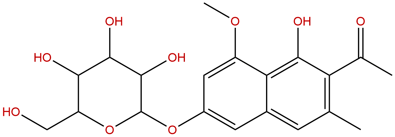 IUPAC Name: 1-[1-hydroxy-8-methoxy-3-methyl-6-[(2S,3R,4S,5S,6R)-3,4,5-trihydroxy-6-(hydroxymethyl)oxan-2-yl]oxynaphthalen-2-yl]ethanone