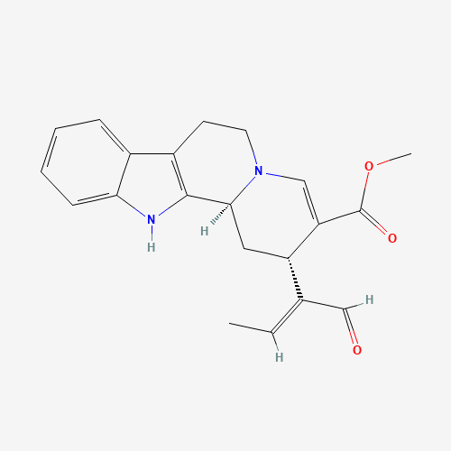 InChI: InChI=1S/C21H22N2O3/c1-3-13(12-24)16-10-19-20-15(14-6-4-5-7-18(14)22-20)8-9-23(19)11-17(16)21(25)26-2/h3-7,11-12,16,19,22H,8-10H2,1-2H3/b13-3-/t16-,19-/m0/s1