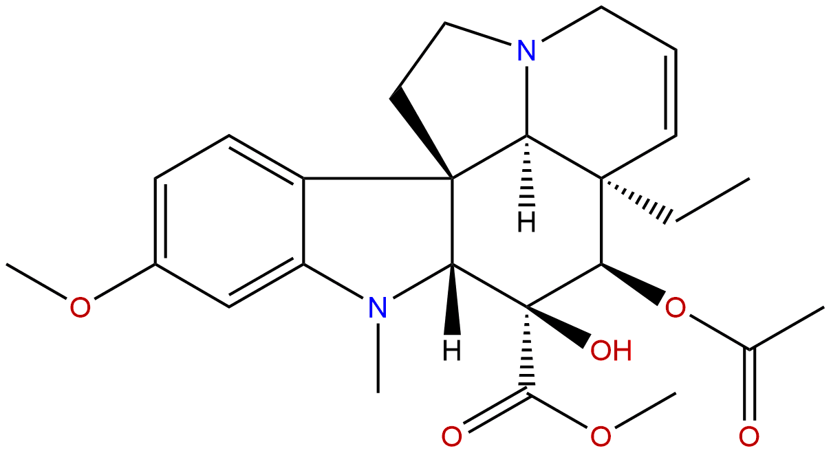IUPAC Name: methyl (1R,9R,10S,11R,12R,19R)-11-acetyloxy-12-ethyl-10-hydroxy-5-methoxy-8-methyl-8,16-diazapentacyclo[10.6.1.01,9.02,7.016,19]nonadeca-2(7),3,5,13-tetraene-10-carboxylate